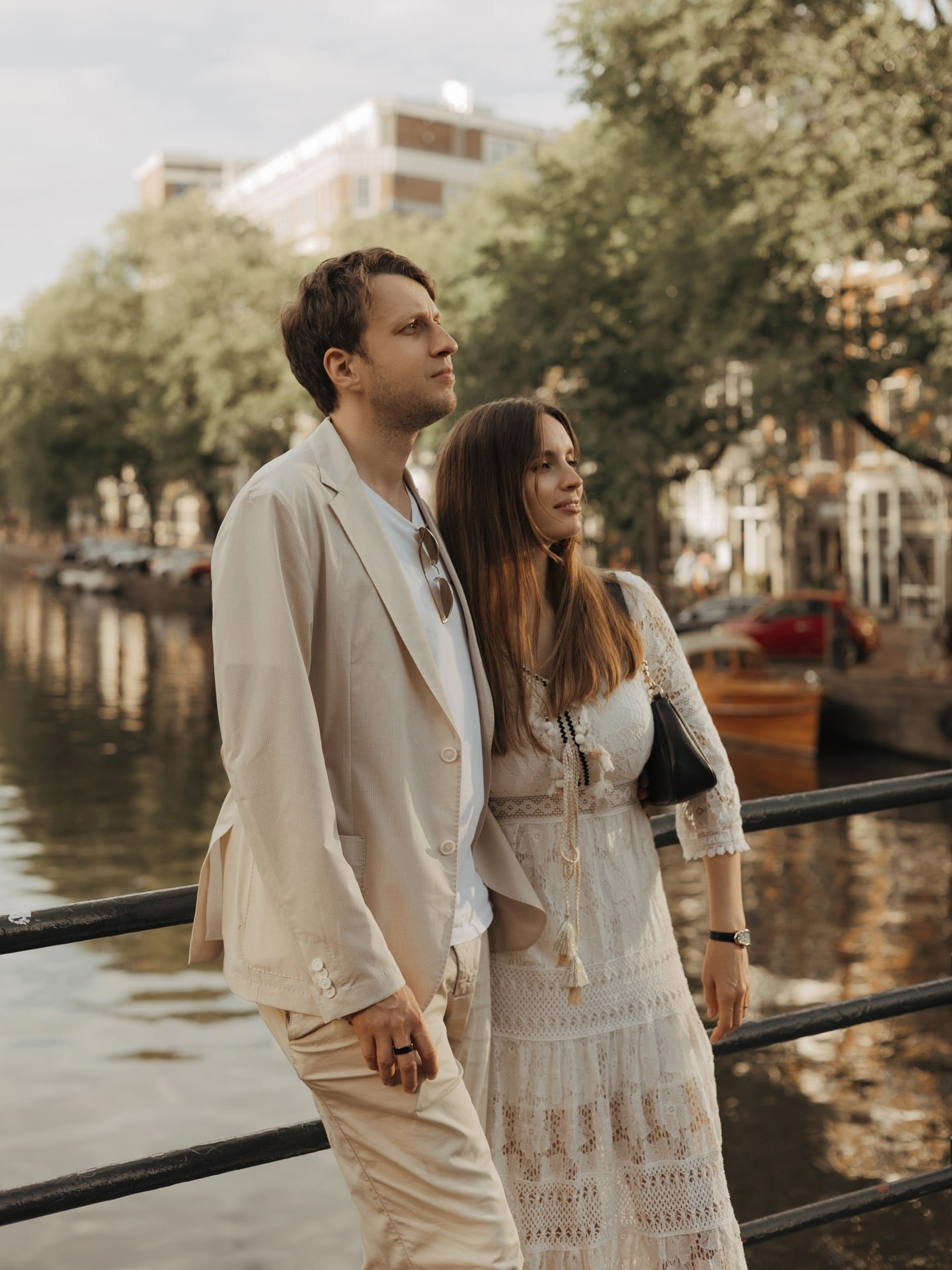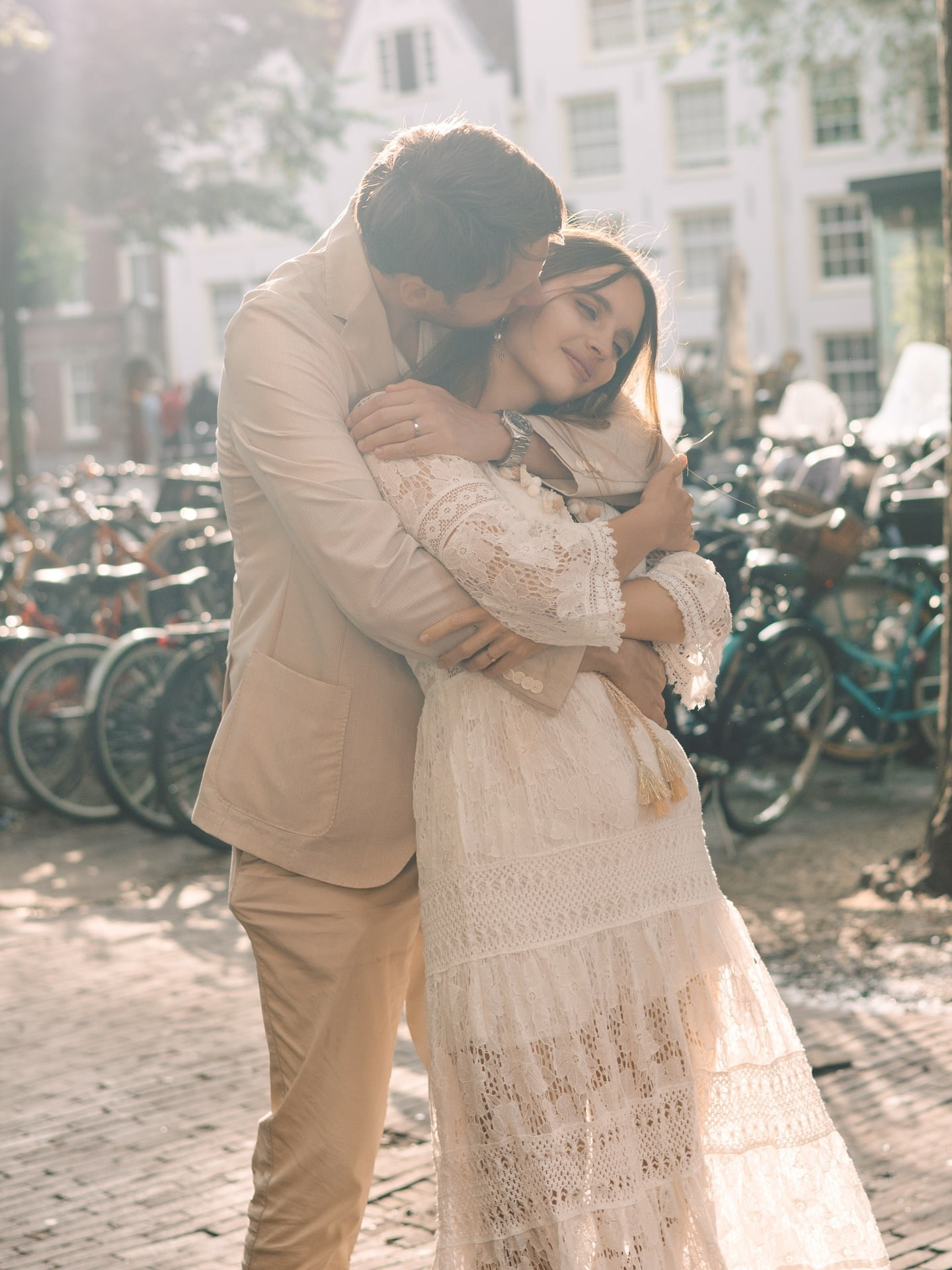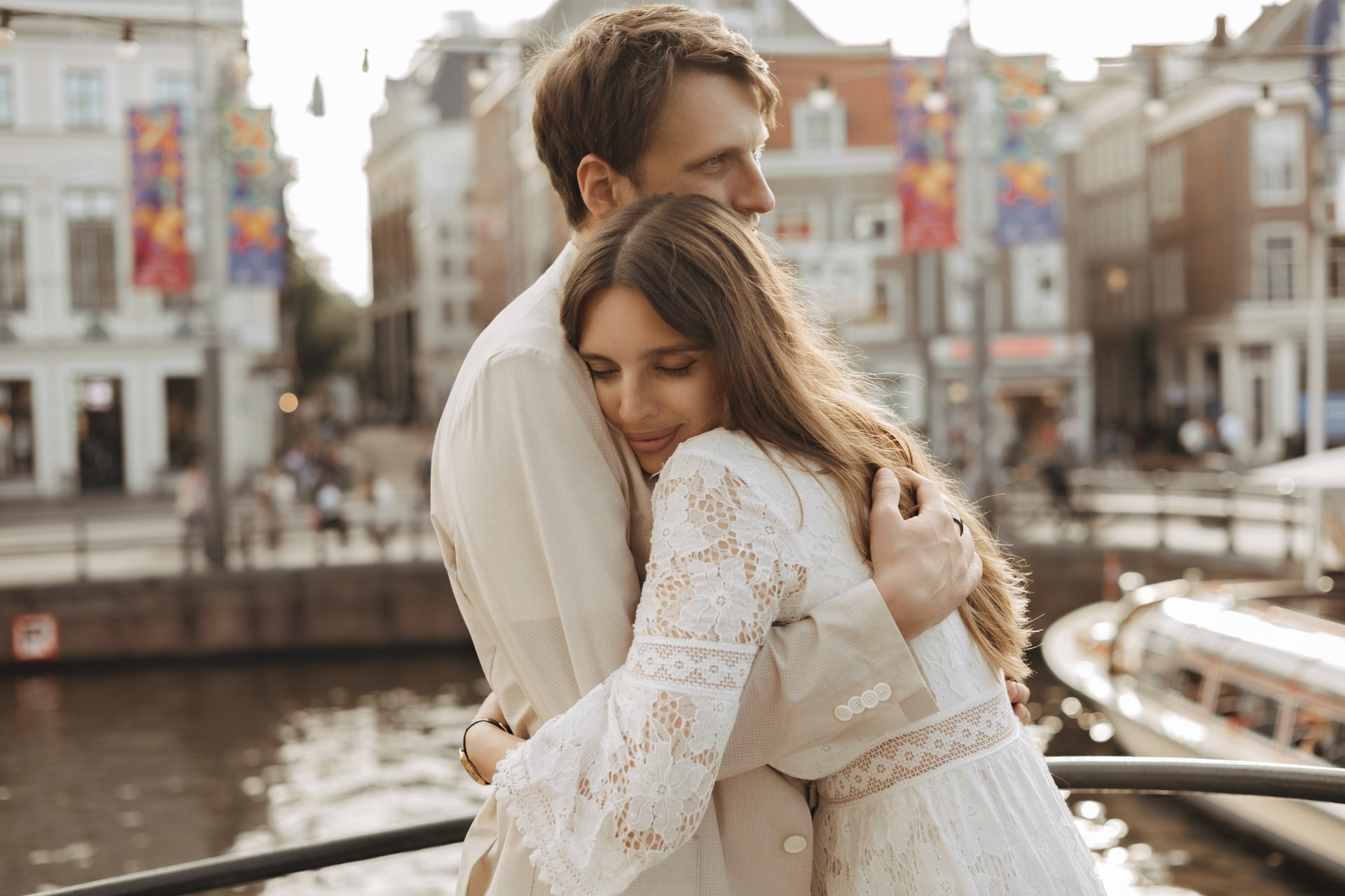 This lovely couple had just celebrated their big day and came to Amsterdam for a short honeymoon. They wanted to capture this brief, beautiful time — their joy, tenderness, and that special feeling of “we just got married.”