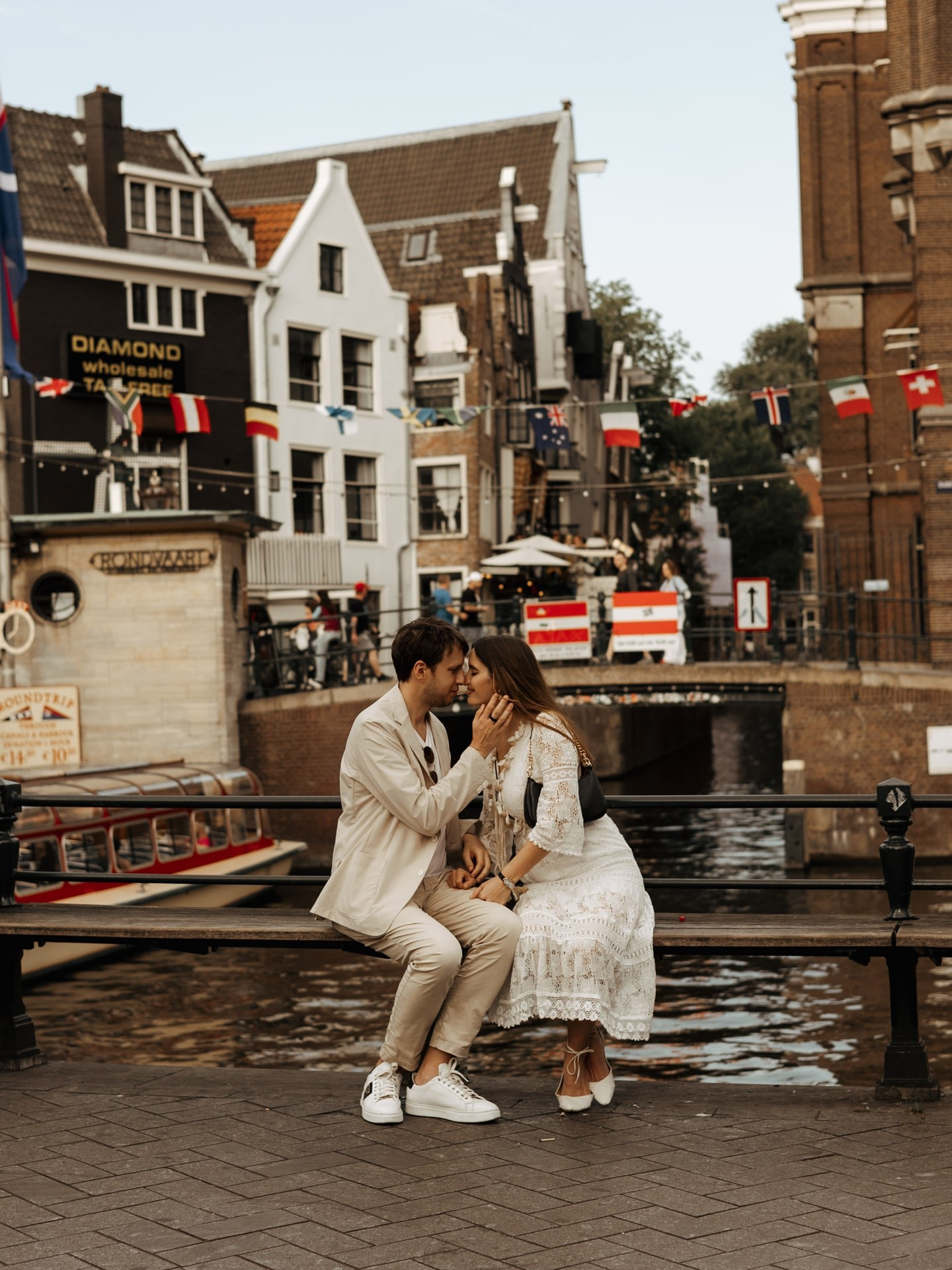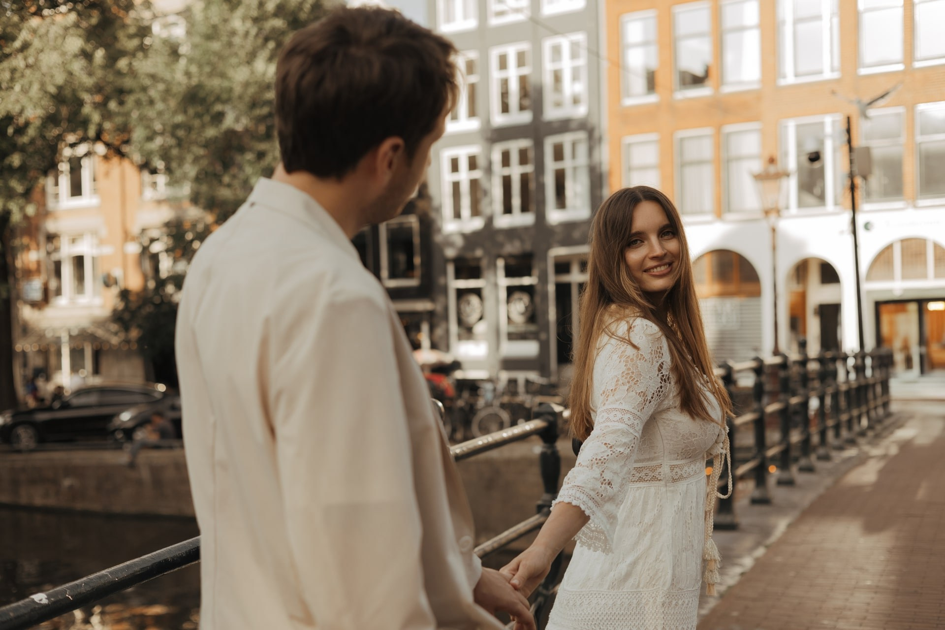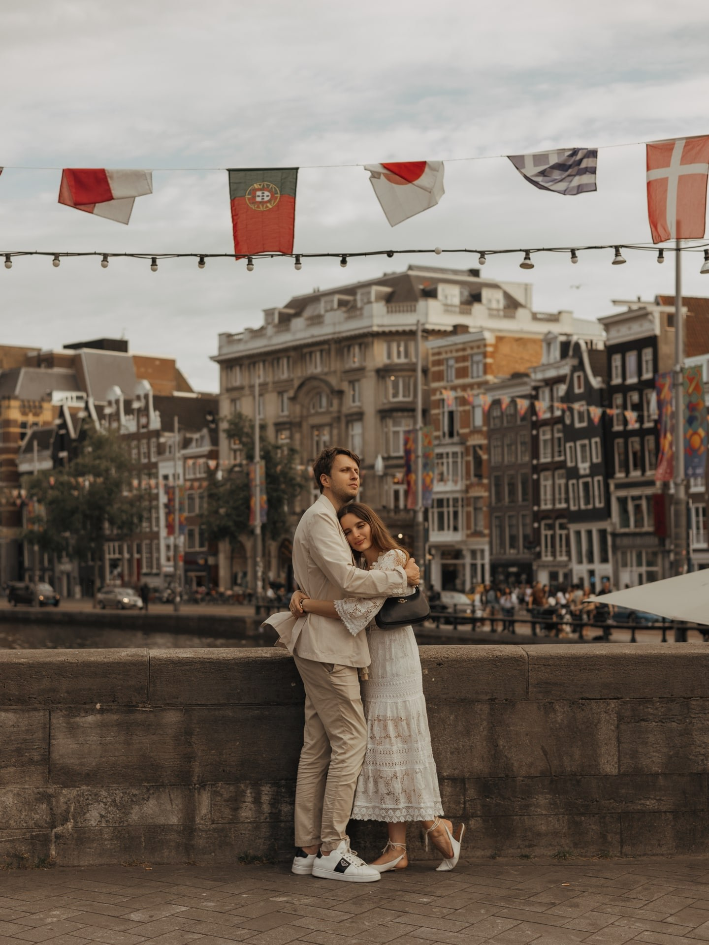 This lovely couple had just celebrated their big day and came to Amsterdam for a short honeymoon. They wanted to capture this brief, beautiful time — their joy, tenderness, and that special feeling of “we just got married.”