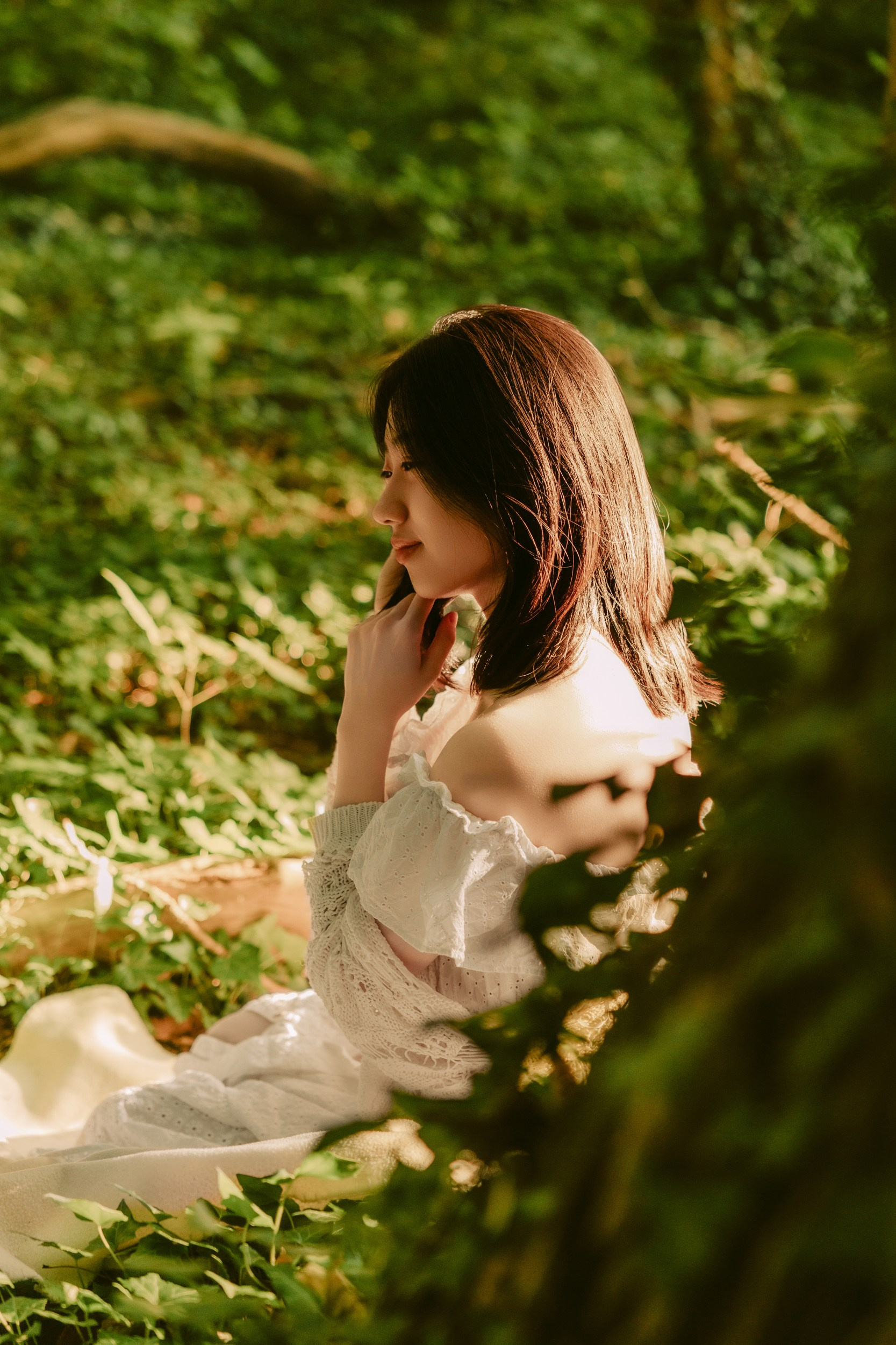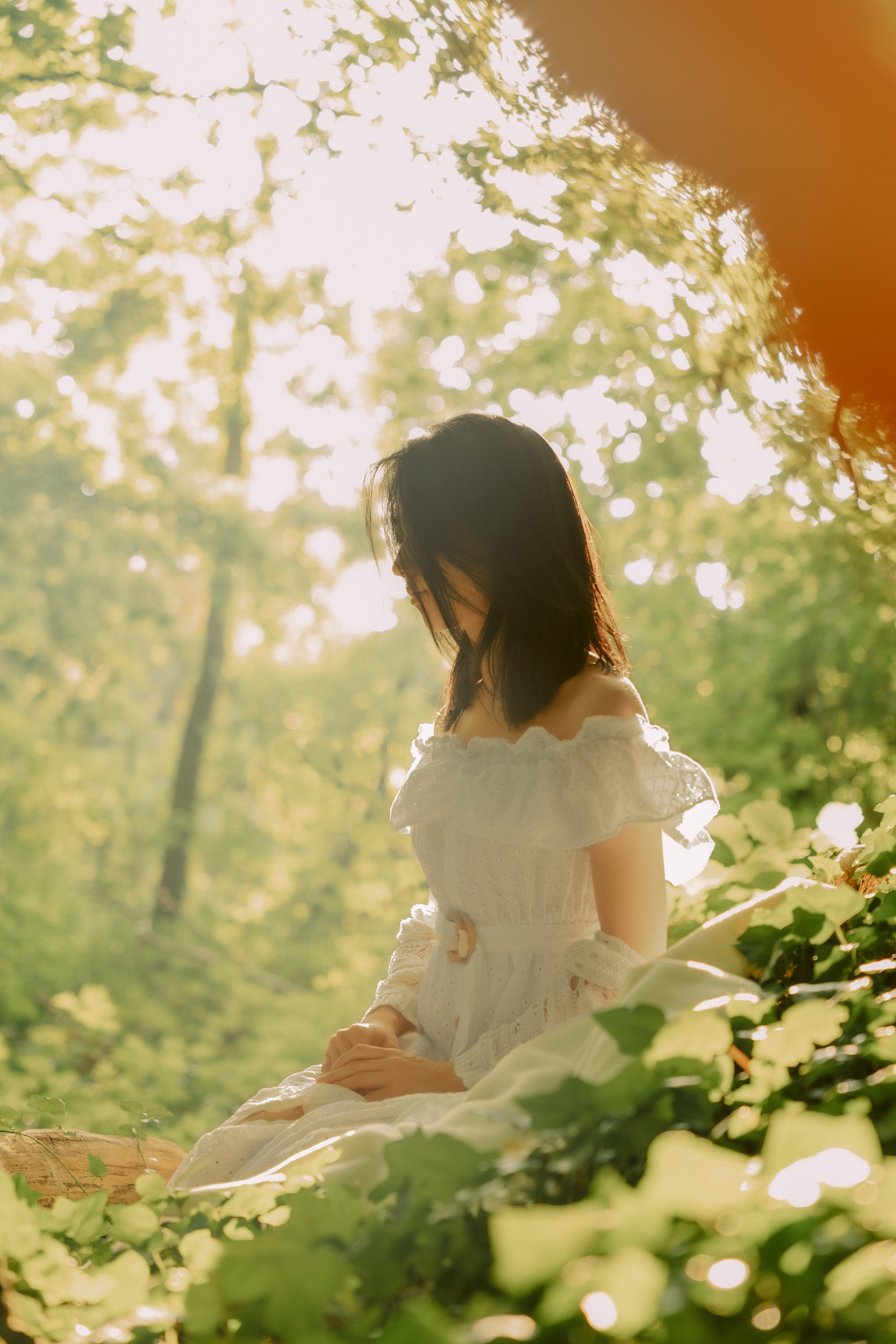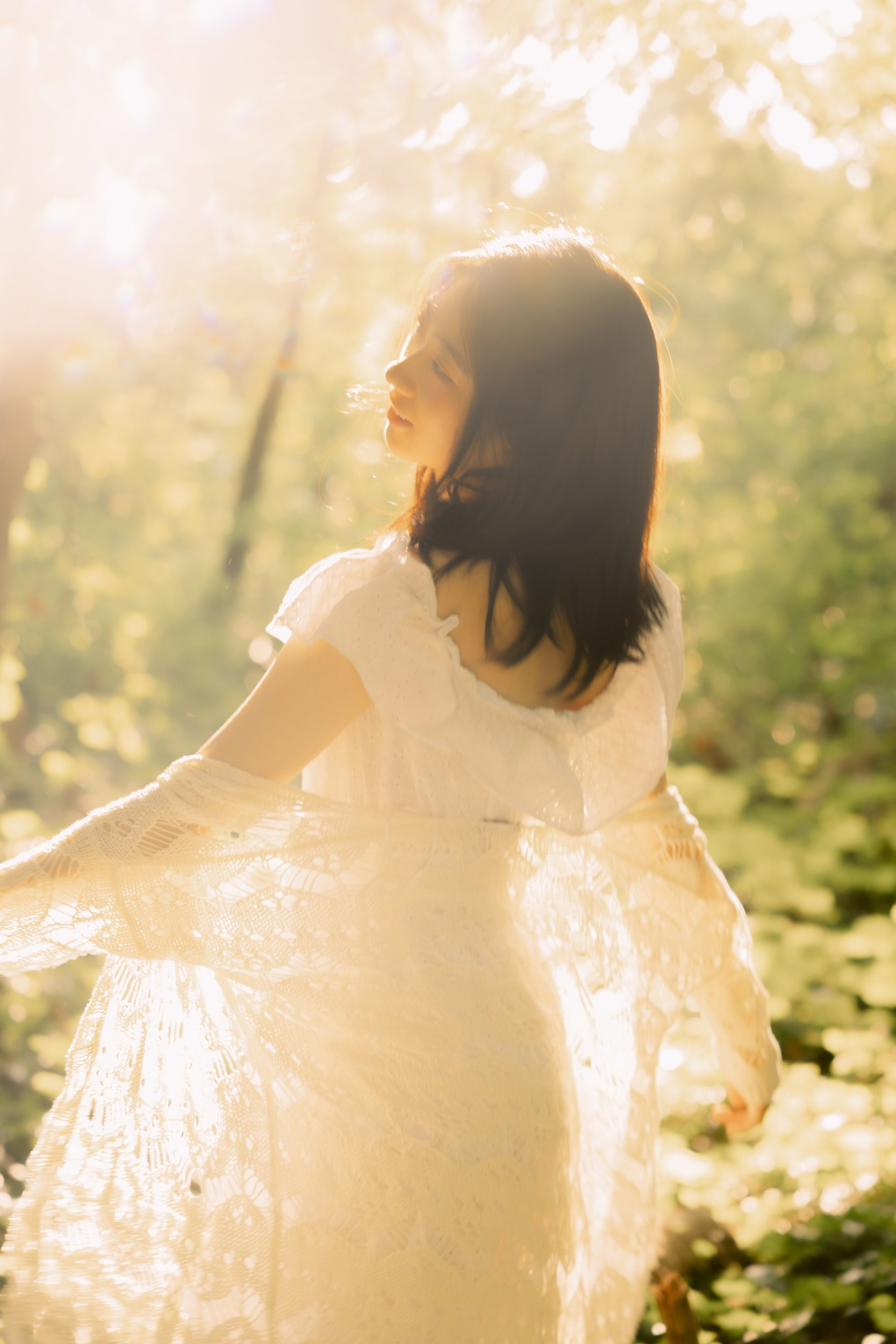 The girl wore a light white dress, and the scene felt soft, airy, and full of quiet emotion.