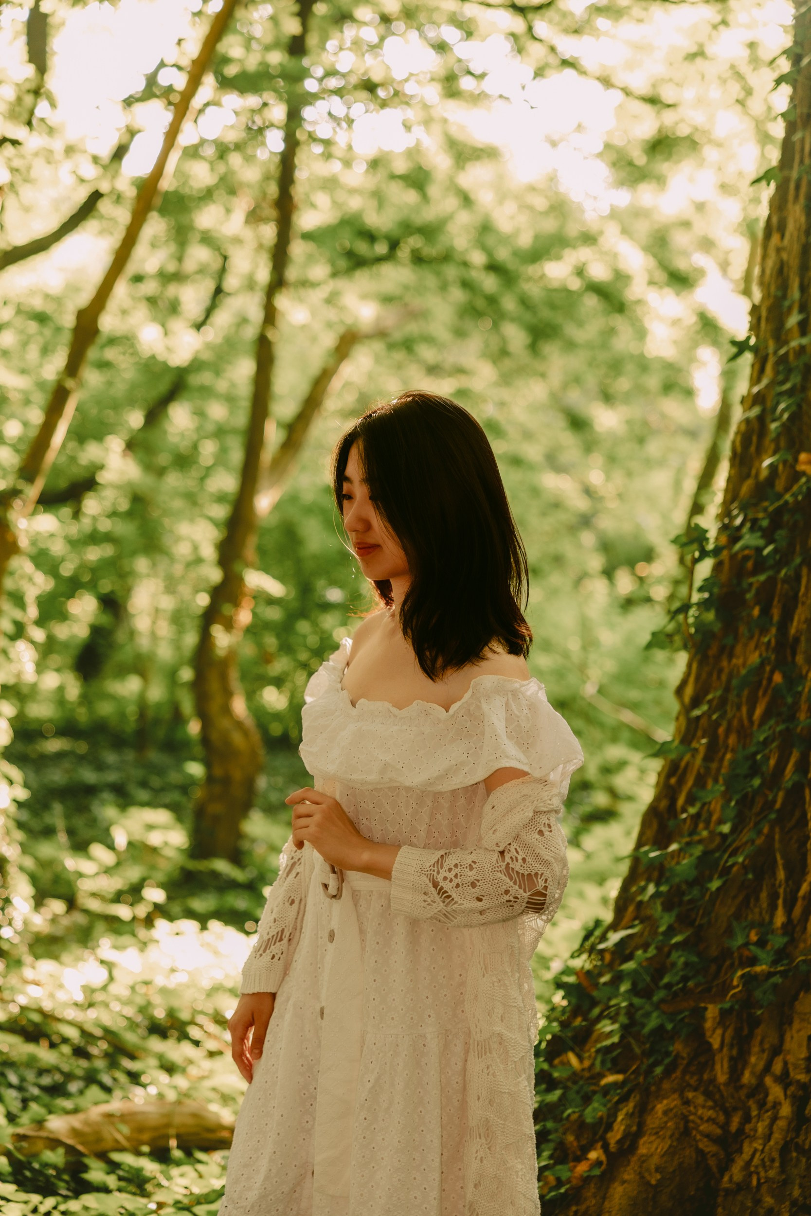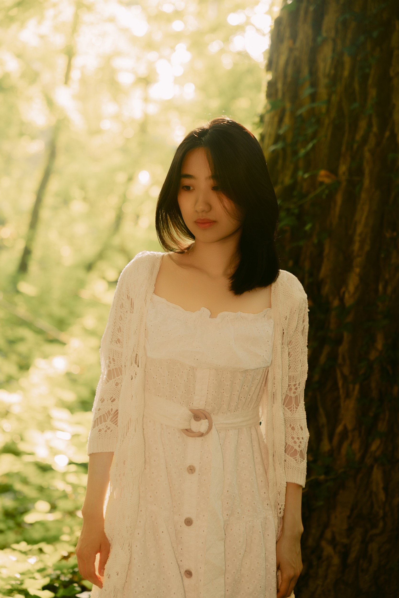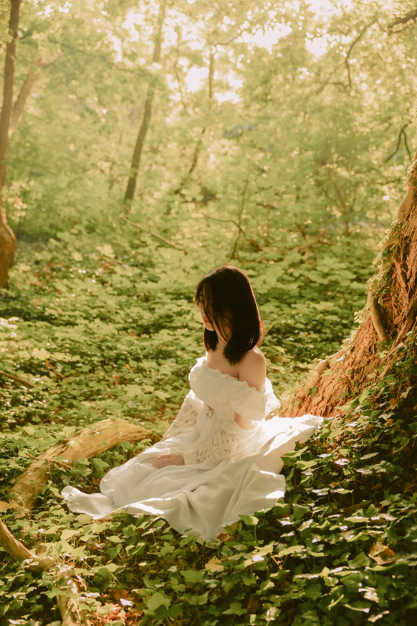 The girl wore a light white dress, and the scene felt soft, airy, and full of quiet emotion.